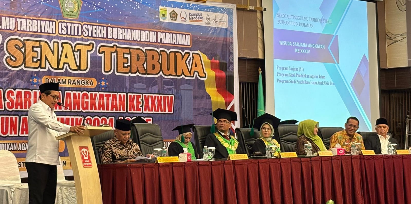 Hal tersebut disampaikan Bupati Padang Pariaman, John Kenedy Azis (JKA), saat memberikan sambutan dalam acara Wisuda ke-34 Sekolah Tinggi Ilmu Tarbiyah (STIT) Syekh Burhanuddin Pariaman Tahun Akademik 2024/2025, yang diselenggarakan di Pangeran Beach Hotel Padang, Kamis (25/9).