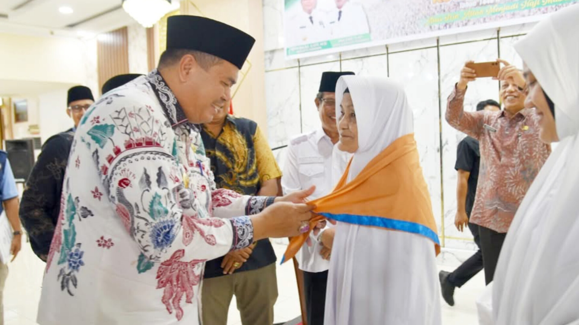Kemudian, dilakukan penyerahan bendera lambang Kota Pariaman serta pemasangan kacu secara simbolis kepada JCH tertua dan termuda. (F)